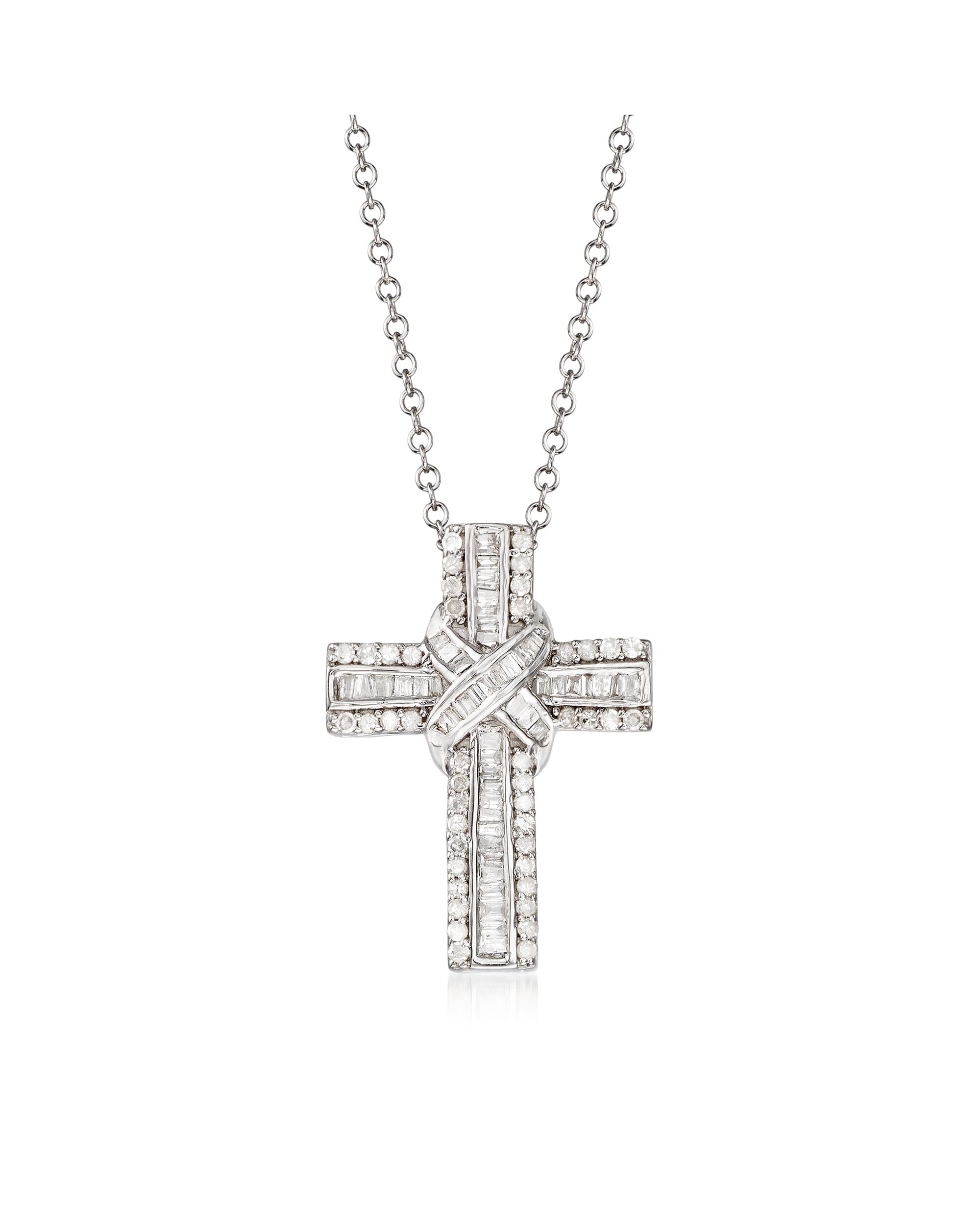 Ross-Simons Diamond Cross Pendant Necklace in Sterling Silver