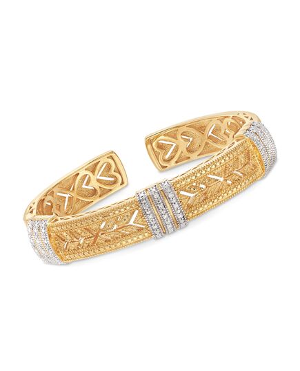 Ross-Simons Diamond Cuff Bracelet in Sterling Silver and 18kt Yellow Gold Over Sterling