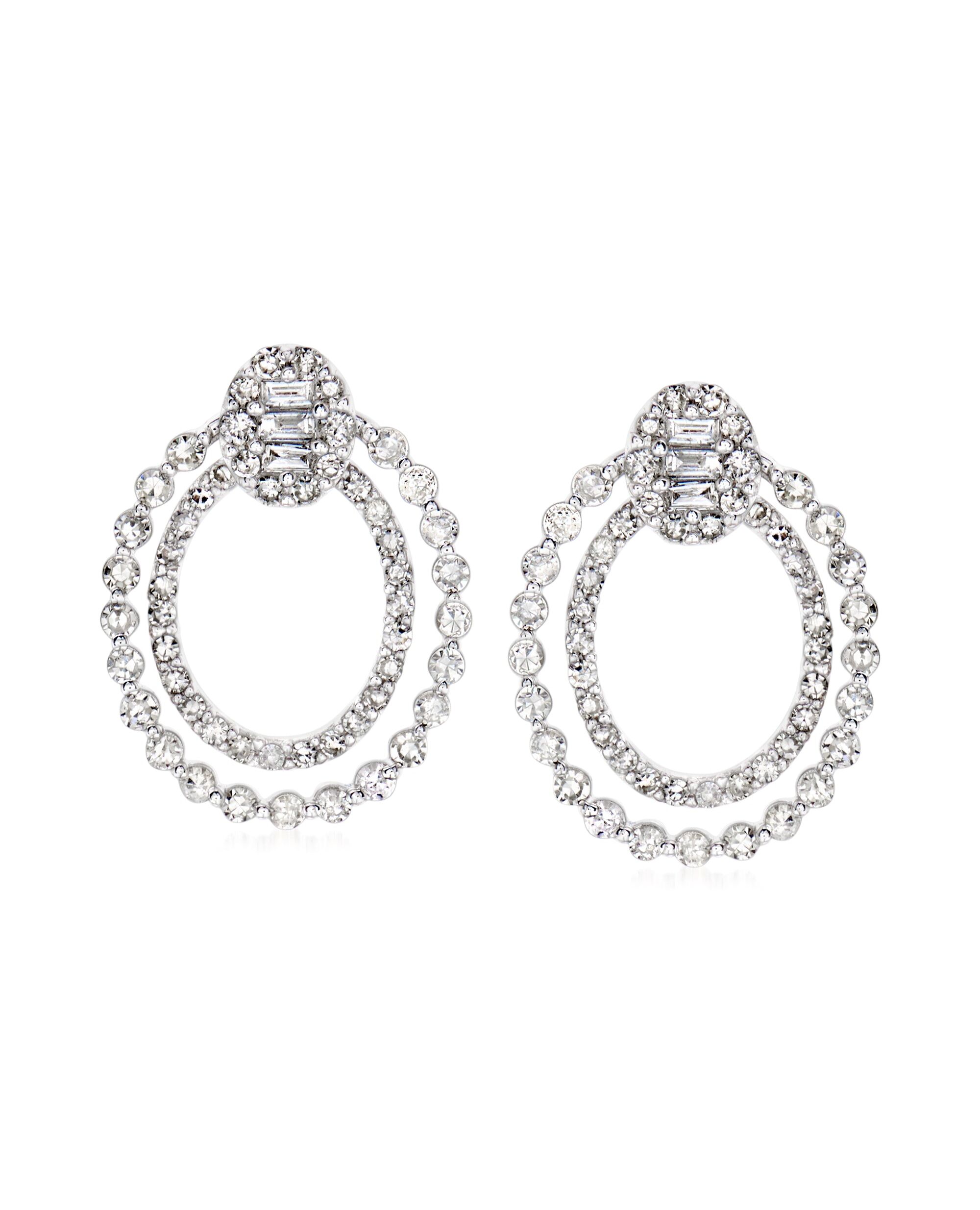 Ross-Simons Diamond Doorknocker Earrings in 14kt White Gold