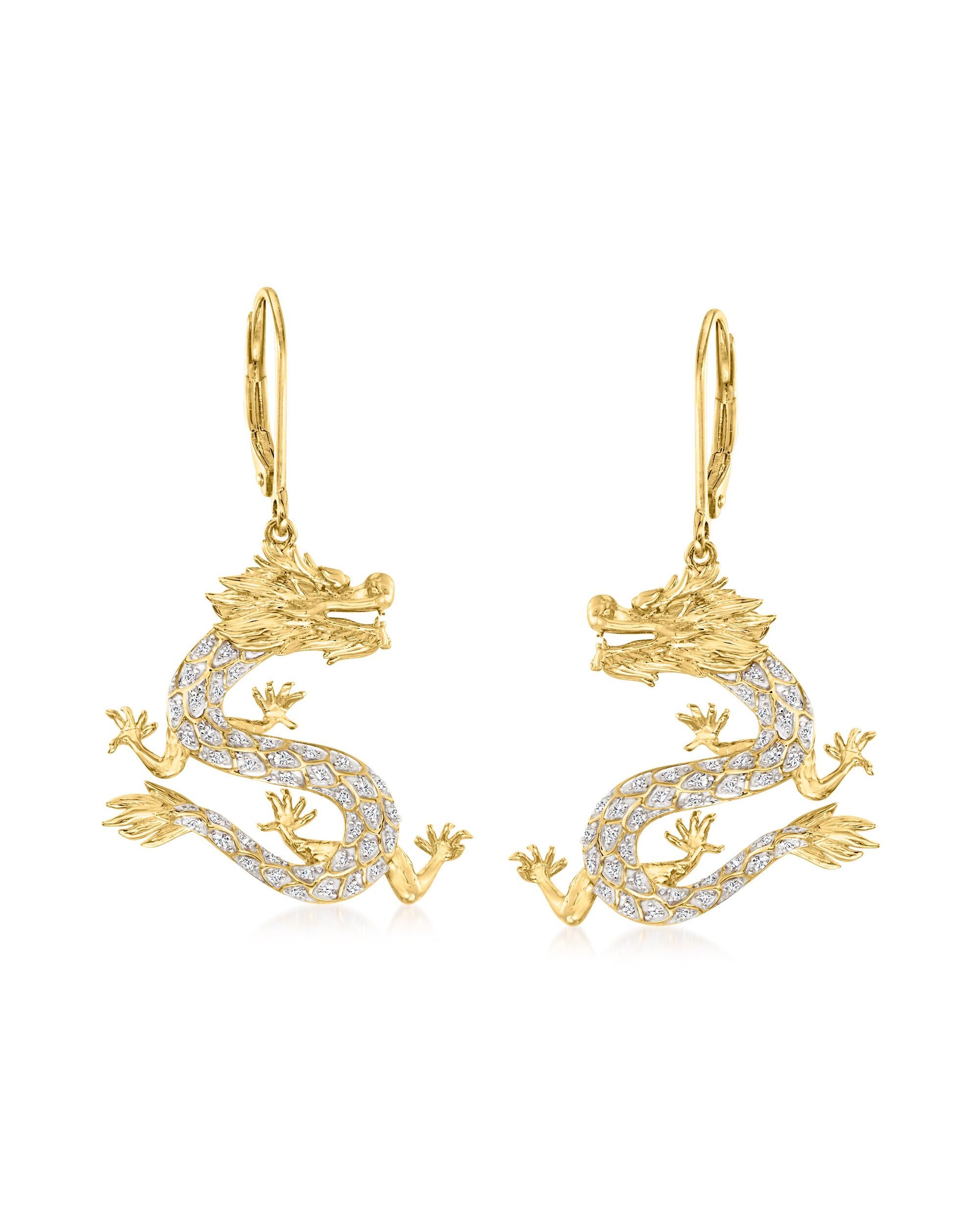 Ross-Simons Diamond Dragon Drop Earrings in 18kt Gold Over Sterling