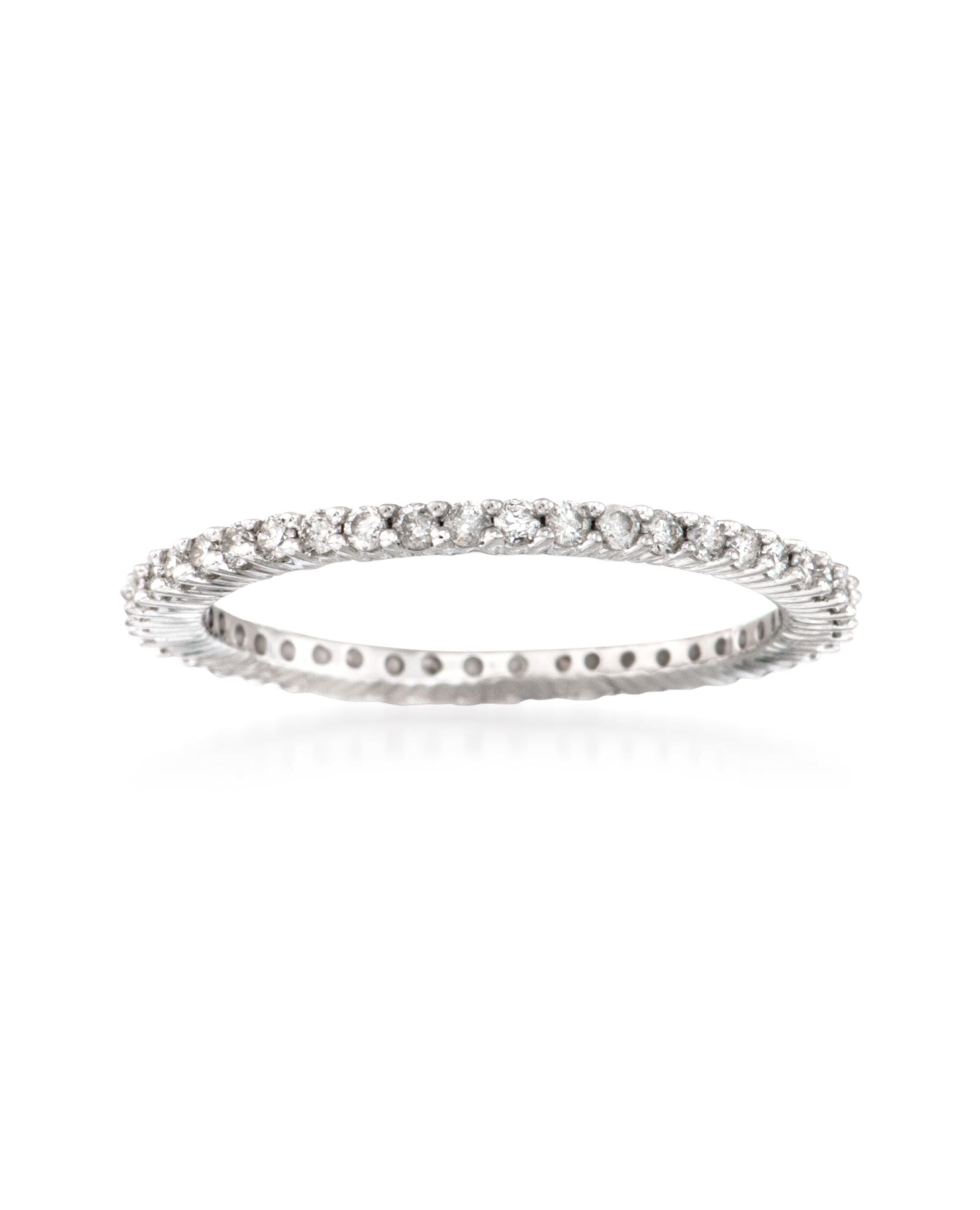 Established in 1952, Ross-Simons brings jewelry classics into the modern era. Delicate and dazzling, this eternity band is encircled by nearly forty diamonds totaling 0.50 carats. Makes a gorgeous wedding or anniversary ring, or gift for any special occasion. 14kt white gold ring. Each Ross-Simons item arrives in a fine jewelry presentation box. Shop Ross-Simons jewelry risk-free as all items include a 30-day, 100% money-back guarantee.Stone InformationGem Type 1 - DiamondStone Cut 1 - Good-CutStone Color 1 - H-IStone Clarity 1 - I2Stone Shape 1 - Round-ShapeStone Creation Method 1 - NaturalStone Treatment Method 1 - Not-TreatedStone Weight 1 - 0.50 CaratsNumber Of Stones 1 - 40-46