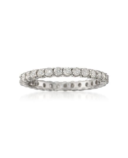 At Ross-Simons, we recognize the style power of versatile classics. 1.00 ct. t.w. round brilliant cut diamonds flicker in a channel-style setting eternity ring. Wear it solo, stack on a few, or combine it with other gemstone bands in a fashionable couture clique. Perfect for a wedding or anniversary ring, and presented in 14kt white gold. Each Ross-Simons item arrives in a fine jewelry presentation box. Shop Ross-Simons jewelry risk-free as all items include a 30-day, 100% money-back guarantee.Stone InformationGem Type 1 - DiamondStone Cut 1 - Good-CutStone Color 1 - H-IStone Clarity 1 - SI2Stone Shape 1 - Round-ShapeStone Creation Method 1 - NaturalStone Treatment Method 1 - Not-TreatedStone Weight 1 - 1.00 CaratsNumber Of Stones 1 - 28-31