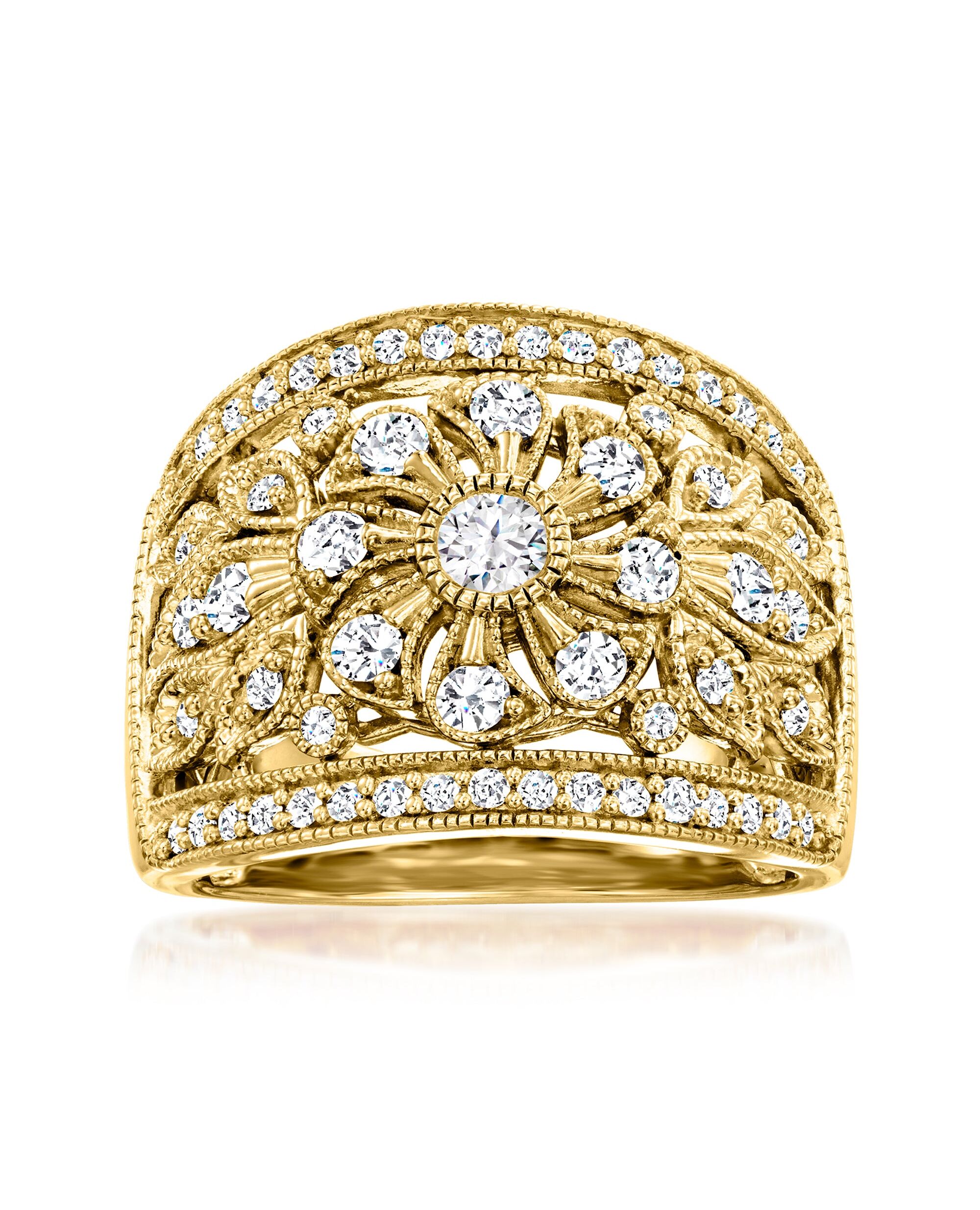 Ross-Simons Diamond Floral Milgrain Ring in 18kt Gold Over Sterling