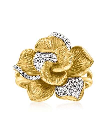 Ross-Simons Diamond Flower Ring in 18kt Gold Over Sterling
