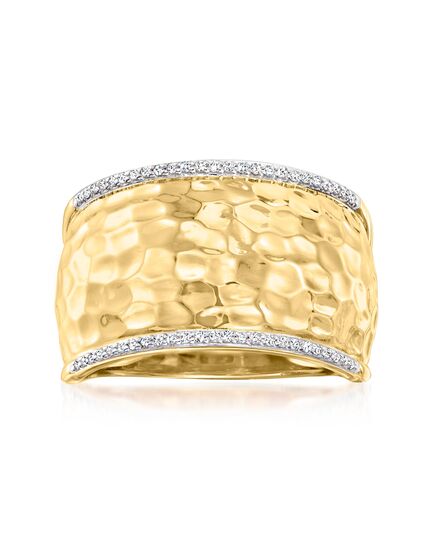 Ross-Simons Diamond Hammered Ring in 18kt Gold Over Sterling