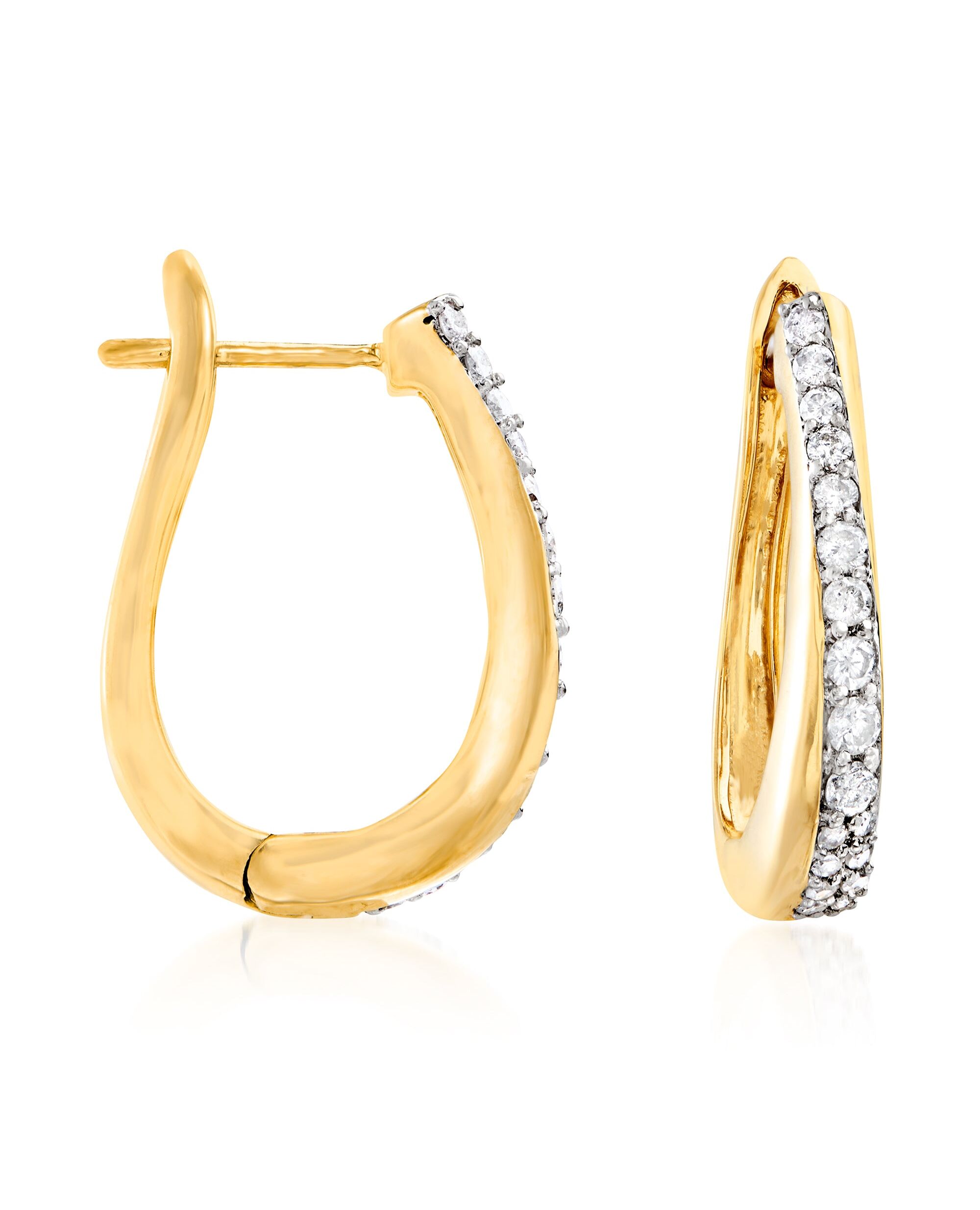 Ross-Simons Diamond Hoop Earrings in 18kt Gold Over Sterling