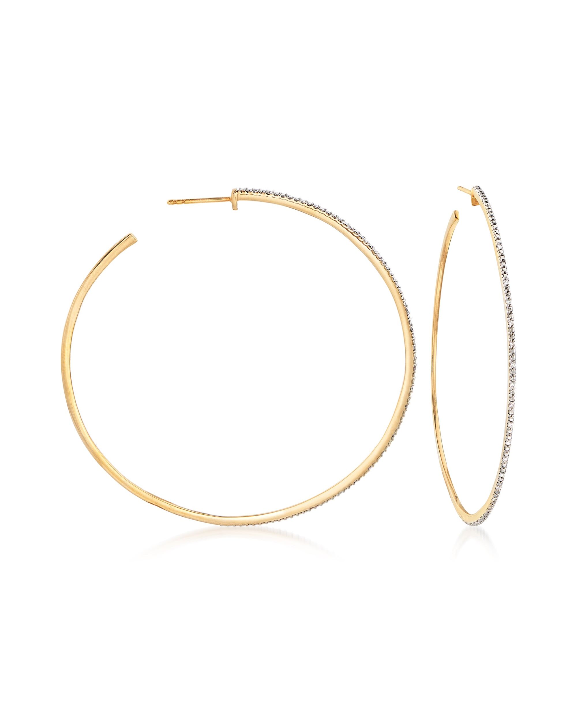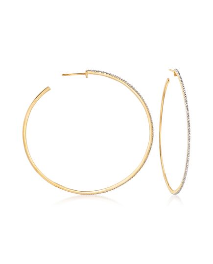Ross-Simons Diamond Hoop Earrings in 18kt Gold Over Sterling