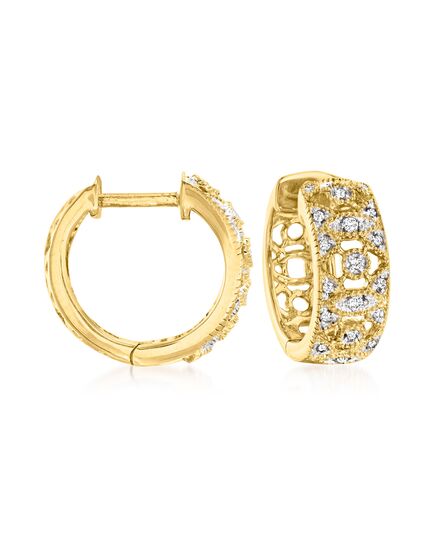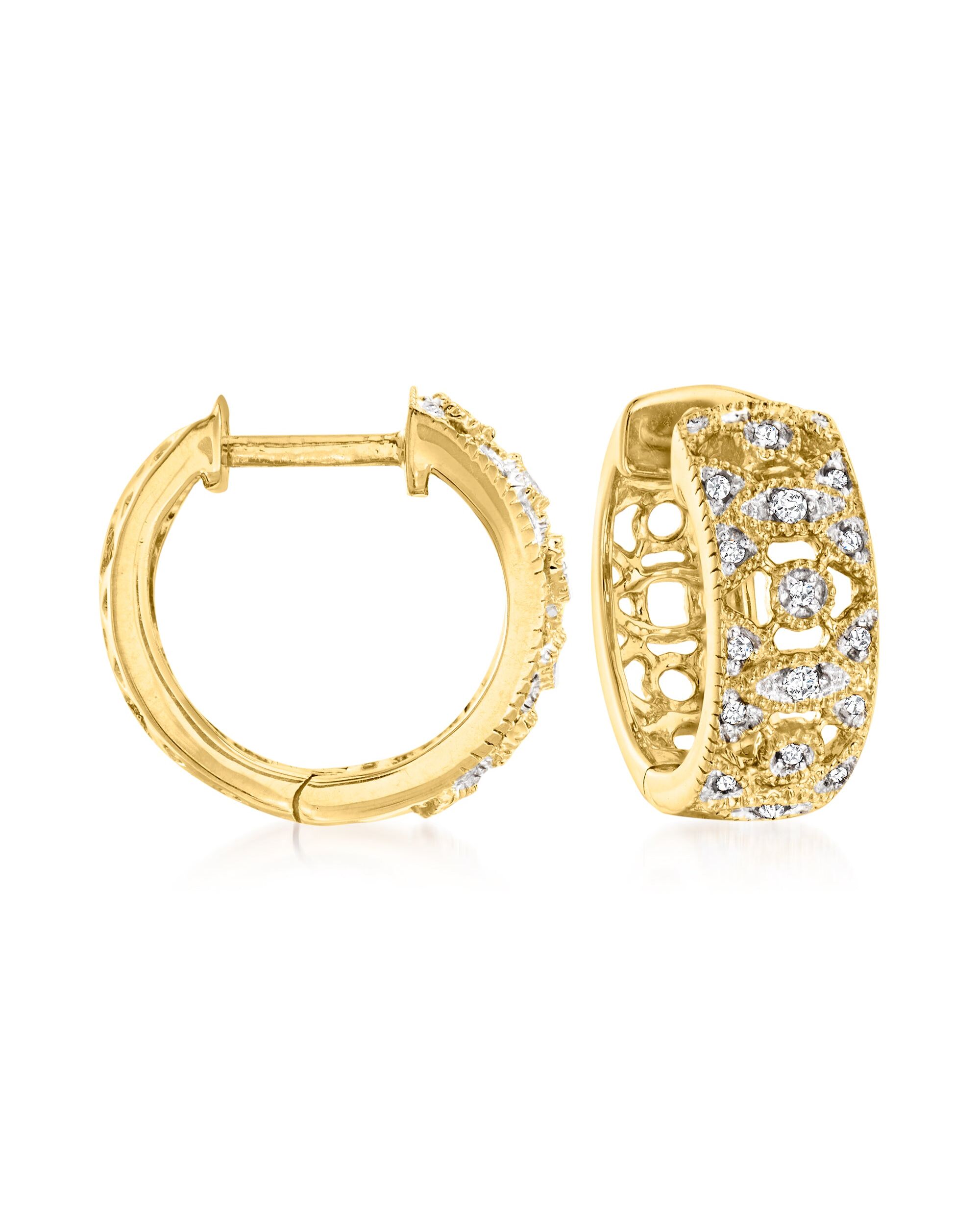Ross-Simons Diamond Hoop Earrings in 18kt Gold Over Sterling