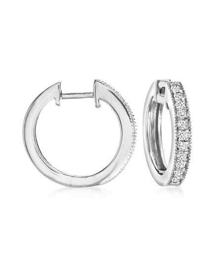 Ross-Simons Diamond Hoop Earrings With Beaded Edge in Sterling Silver