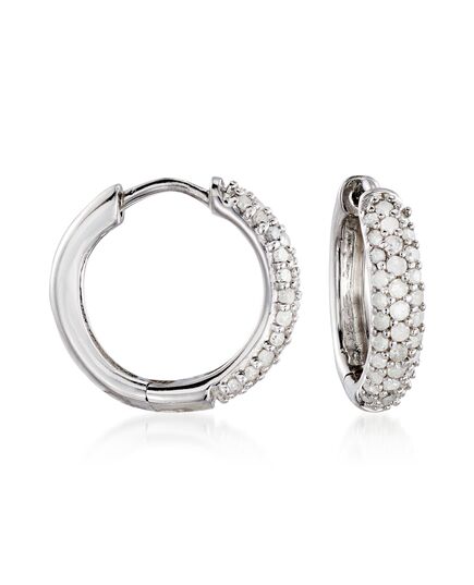 Ross-Simons Diamond Huggie Hoop Earrings in Sterling Silver