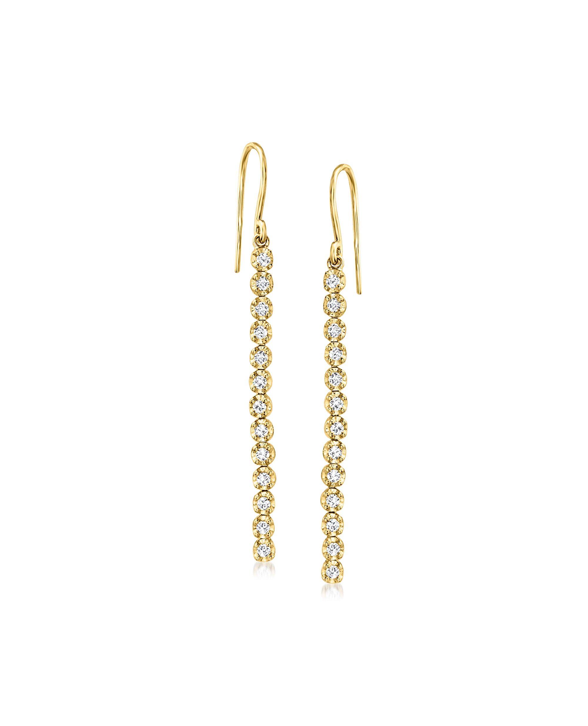 Ross-Simons Diamond Linear Drop Earrings in 14kt Yellow Gold