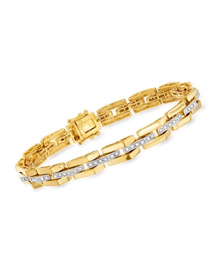 Ross-Simons Diamond Link Bar-Center Bracelet in 18kt Gold Over Sterling