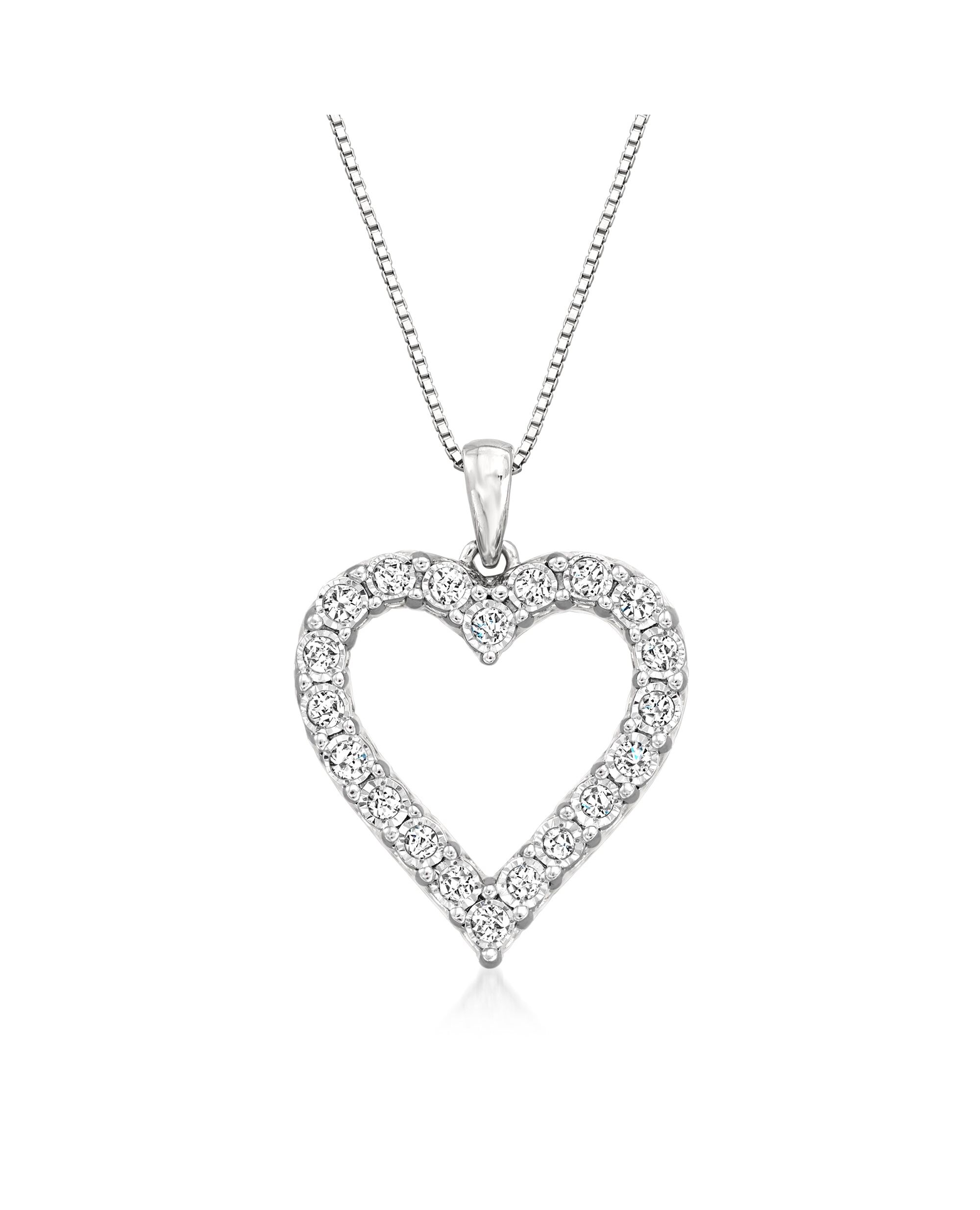 Ross-Simons Diamond Open-Space Heart Pendant Necklace in Sterling Silver