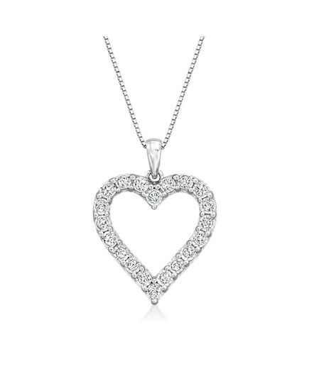 Ross-Simons Diamond Open-Space Heart Pendant Necklace in Sterling Silver