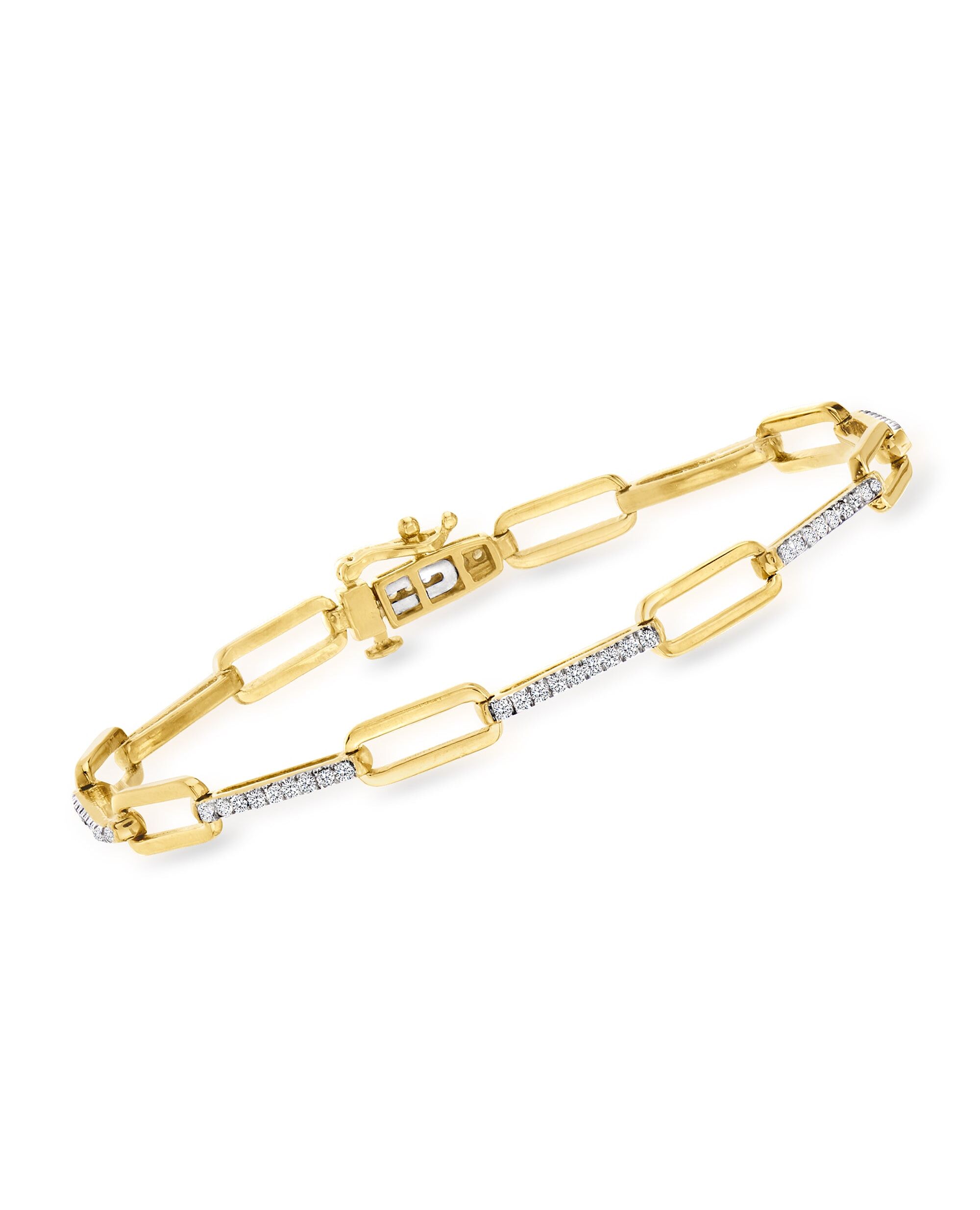 Ross-Simons Diamond Paper Clip Link Bracelet in 18kt Gold Over Sterling