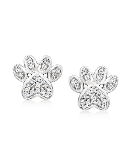 Ross-Simons Diamond Paw Print Stud Earrings in Sterling Silver