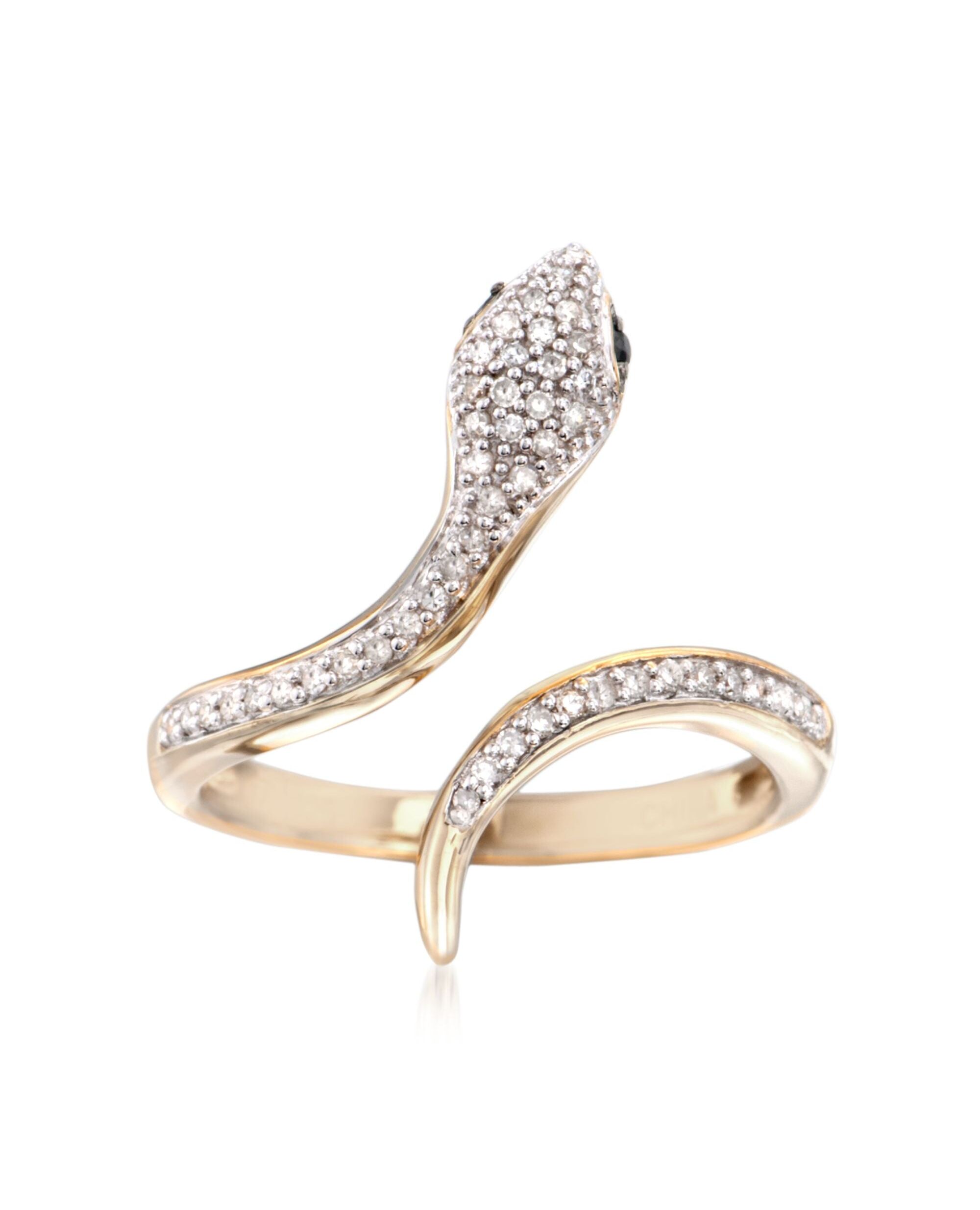 Ross-Simons Diamond Serpent Ring With Black Spinel in 18kt Gold Over Sterling