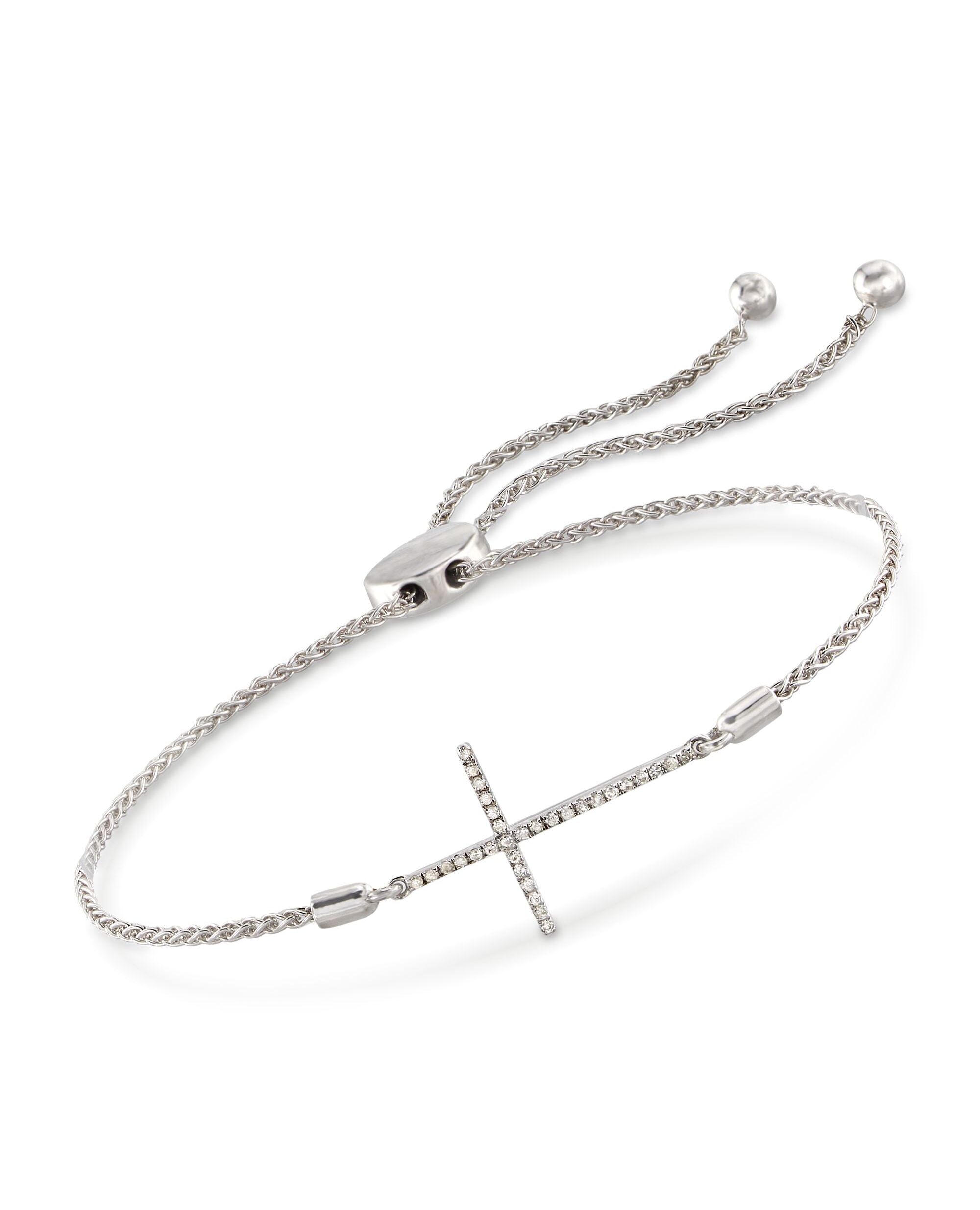 Ross-Simons Diamond Sideways Cross Bolo Bracelet in Sterling Silver