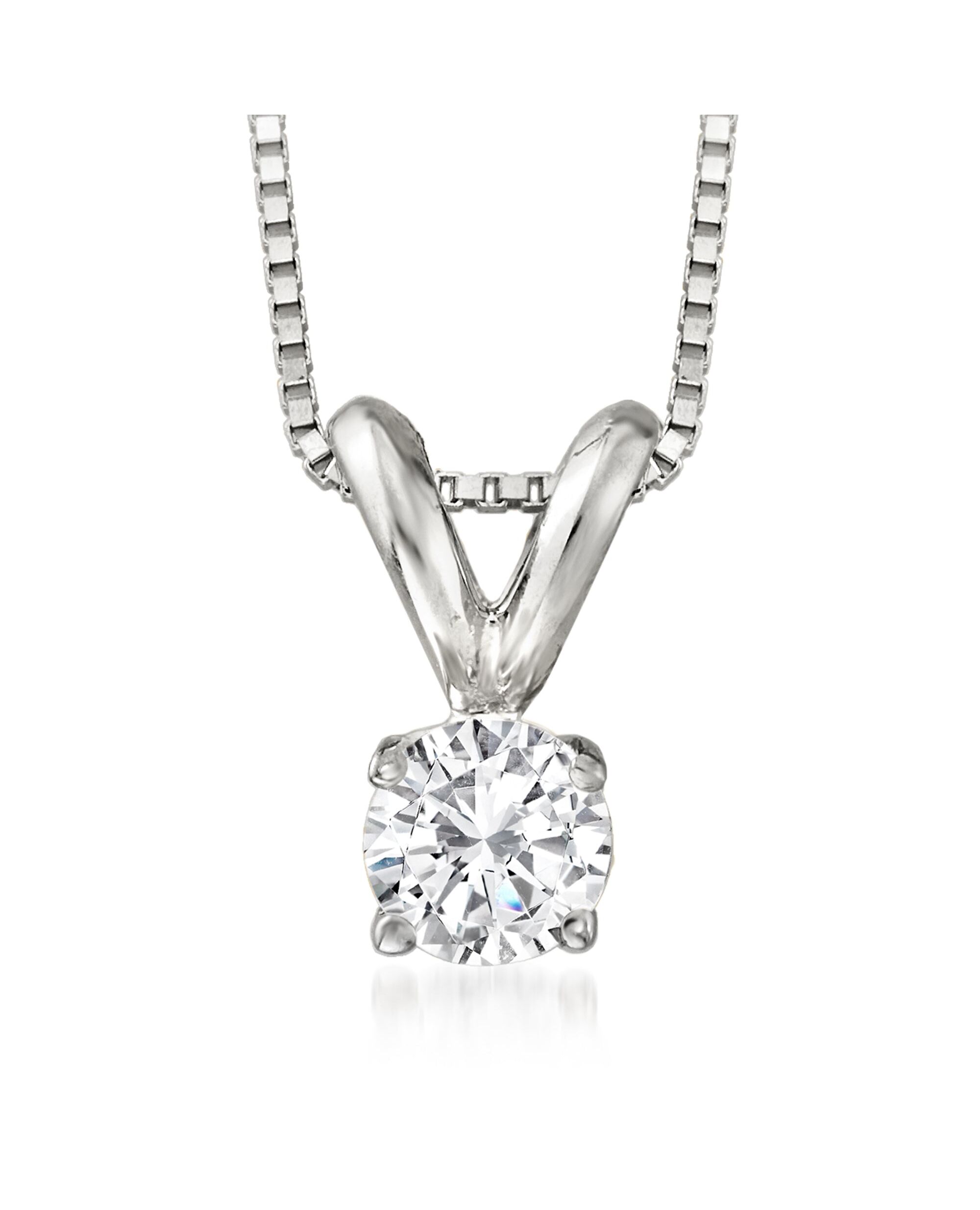 Ross-Simons Diamond Solitaire Pendant Necklace in 14kt White Gold