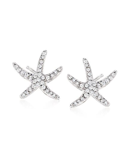 Ross-Simons Diamond Starfish Earrings in Sterling Silver