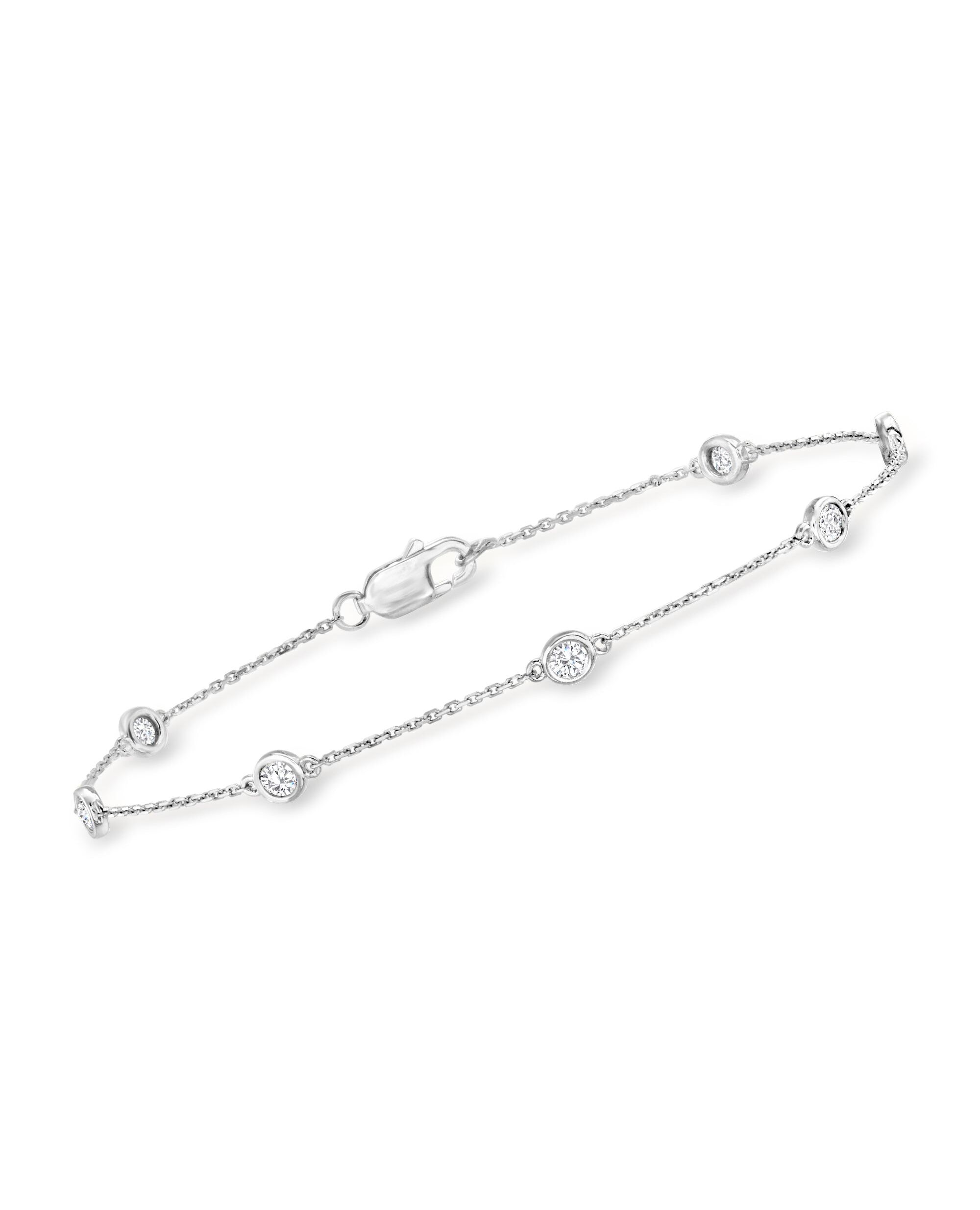 Established in 1952, Ross-Simons presents contemporary styles with a timeless appeal. Perfectly delicate, this everyday bracelet features 0.50 ct. t.w. round brilliant-cut diamonds stationed on a cable chain. Set in polished sterling silver. Lobster clasp, diamond station bracelet. Each Ross-Simons item arrives in a fine jewelry presentation box. Shop Ross-Simons jewelry risk-free as all items include a 30-day, 100% money-back guarantee.Stone InformationGem Type 1 - DiamondStone Cut 1 - Good-CutStone Color 1 - I-JStone Clarity 1 - I3Stone Shape 1 - Round-ShapeStone Creation Method 1 - NaturalStone Treatment Method 1 - Not-TreatedStone Weight 1 - 0.50 CaratsNumber Of Stones 1 - 7