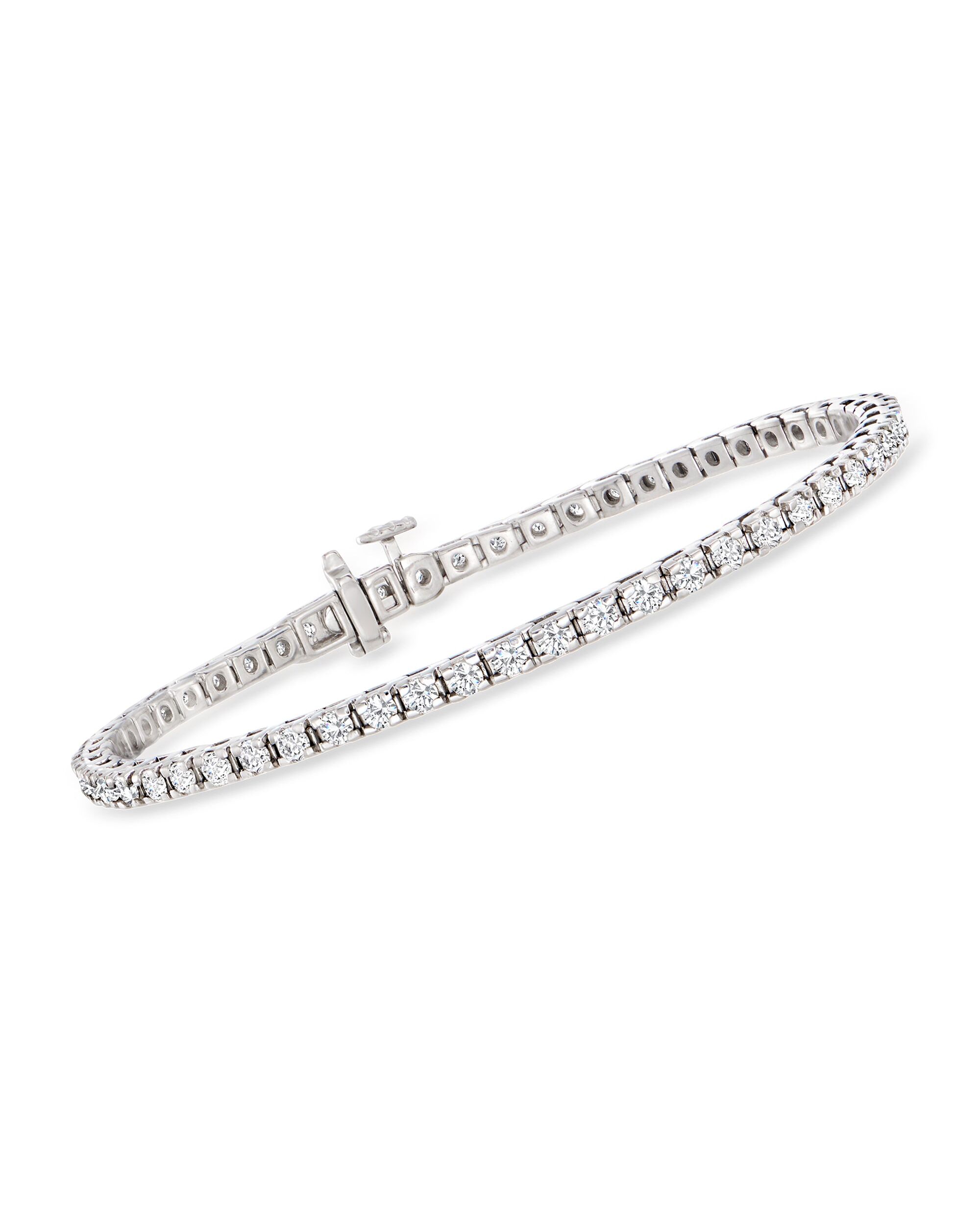 At Ross-Simons, we recognize the style power of versatile classics. You deserve a diamond design as classic as you are. On this scintillating tennis bracelet, 3.00 ct. t.w. round brilliant-cut diamonds parade around the wrist in high-polished sterling silver. Opulent and always en vogue, this is a bracelet you will treasure for a lifetime. Single-latch safety. Push-button clasp, diamond tennis bracelet. Each Ross-Simons item arrives in a fine jewelry presentation box. Shop Ross-Simons jewelry risk-free as all items include a 30-day, 100% money-back guarantee.Stone InformationGem Type 1 - DiamondStone Cut 1 - Good-CutStone Color 1 - I-JStone Clarity 1 - I2Stone Shape 1 - Round-ShapeStone Creation Method 1 - NaturalStone Treatment Method 1 - Not-TreatedStone Weight 1 - 3.00-3.45 CaratsNumber Of Stones 1 - 55
