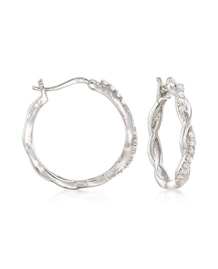 Ross-Simons Diamond Twisted Hoop Earrings in Sterling Silver