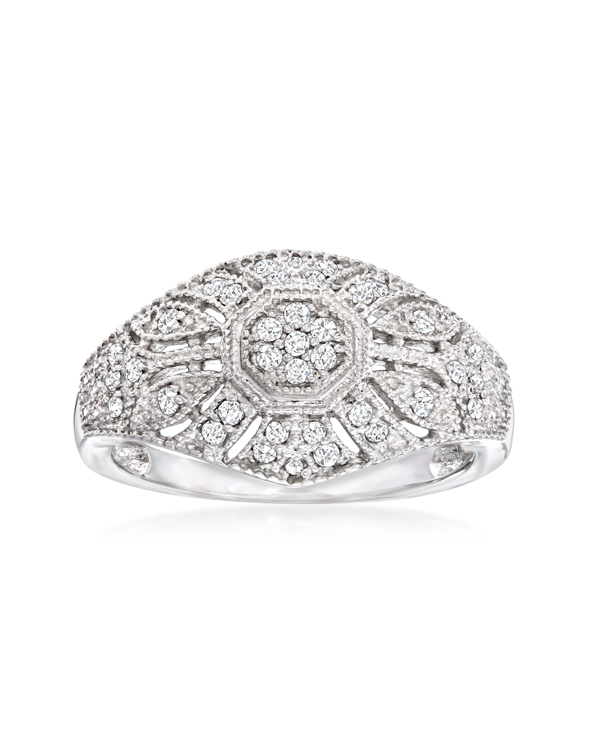 Ross-Simons Diamond Vintage-Inspired Milgrain Ring in Sterling Silver