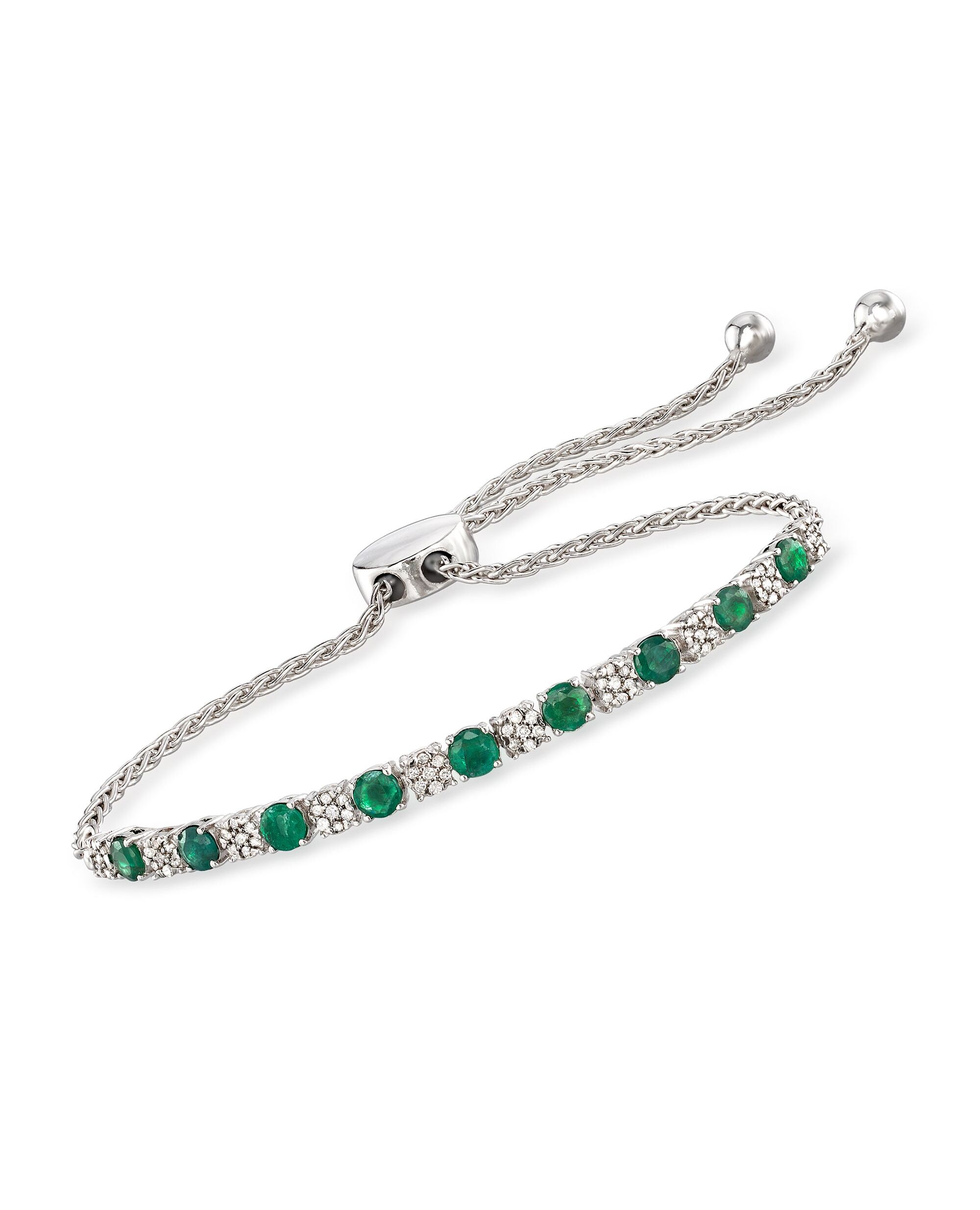 Ross-Simons Emerald and . Diamond Bolo Bracelet in Sterling Silver