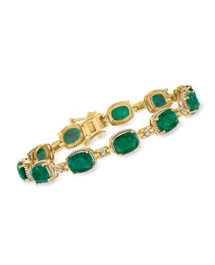 Ross-Simons Emerald and . Diamond Bracelet in 18kt Gold Over Sterling