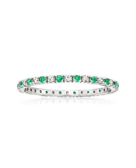 With a commitment to quality and affordability, Ross-Simons presents timeless jewelry for the modern woman. An always charming classic. This eternity band shimmers with 0.20 ct. t.w. emerald beauties between .15 ct. t.w. diamond rounds. Set in 14kt white gold. Diamond and emerald eternity ring. Each Ross-Simons item arrives in a fine jewelry presentation box. Shop Ross-Simons jewelry risk-free as all items include a 30-day, 100% money-back guarantee.Stone InformationGem Type 1 - EmeraldStone Cut 1 - Good-CutStone Color 1 - GreenStone Clarity 1 - GreenStone Shape 1 - Round-ShapeStone Creation Method 1 - NaturalStone Treatment Method 1 - OiledStone Weight 1 - 0.15 CaratsNumber Of Stones 1 - 18Gem Type 2 - DiamondStone Cut 2 - Good-CutStone Color 2 - I-JStone Clarity 2 - I1Stone Shape 2 - Round-ShapeStone Creation Method 2 - NaturalStone Treatment Method 2 - Not-TreatedStone Weight 2 - 0.13 CaratsNumber Of Stones 2 - 18-0
