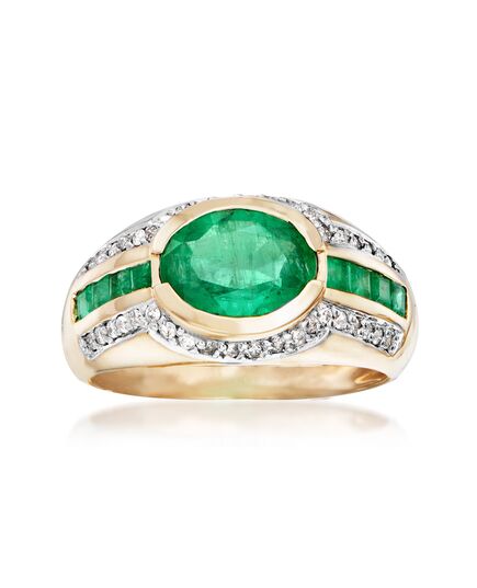 Ross-Simons Emerald and . Diamond Ring in 14kt Yellow Gold