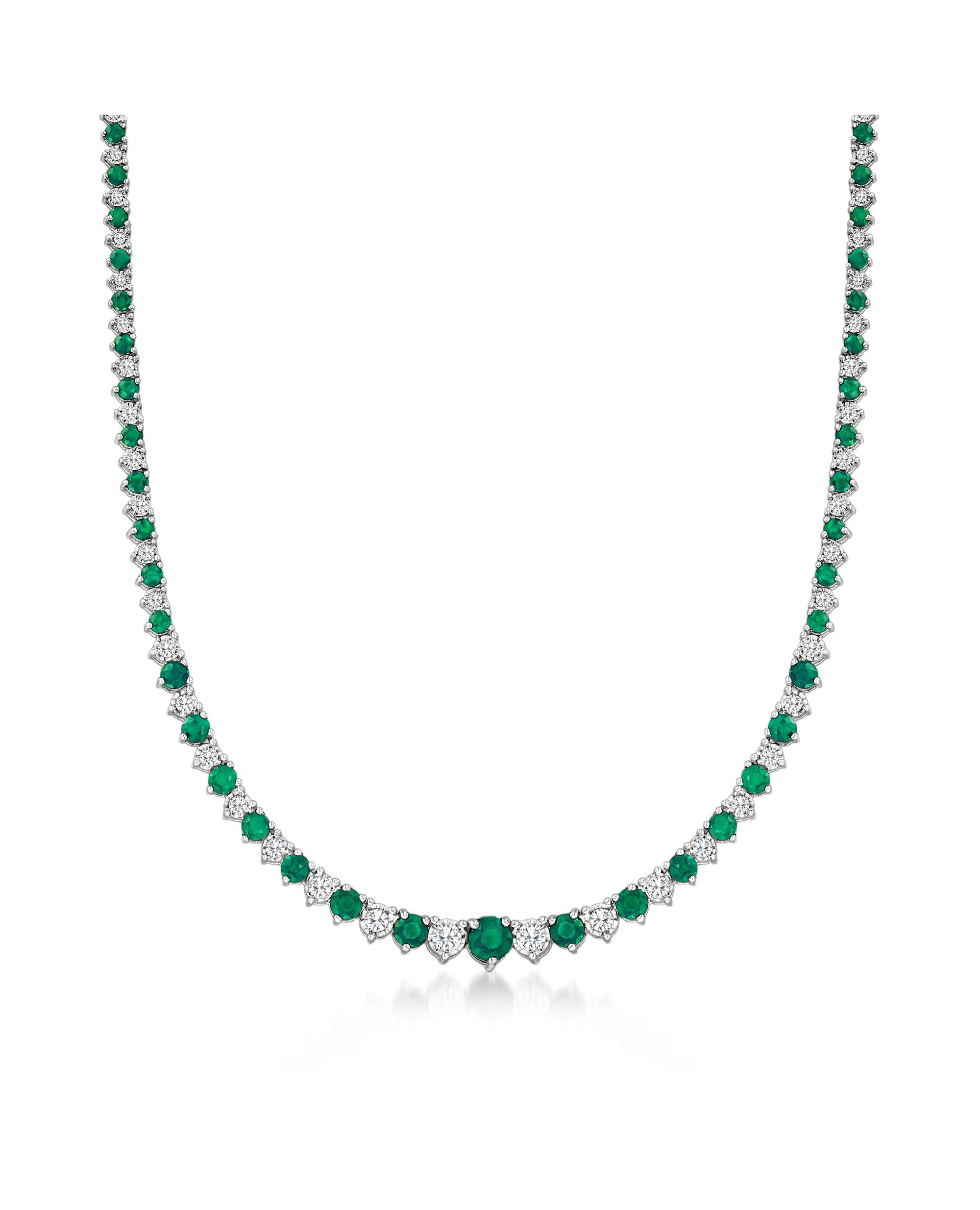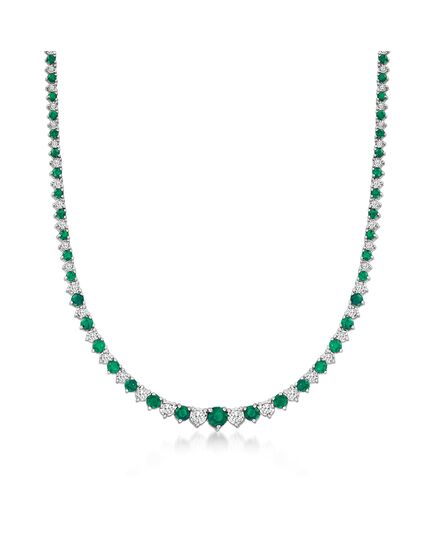 Ross-Simons Emerald and Diamond Necklace in Sterling Silver