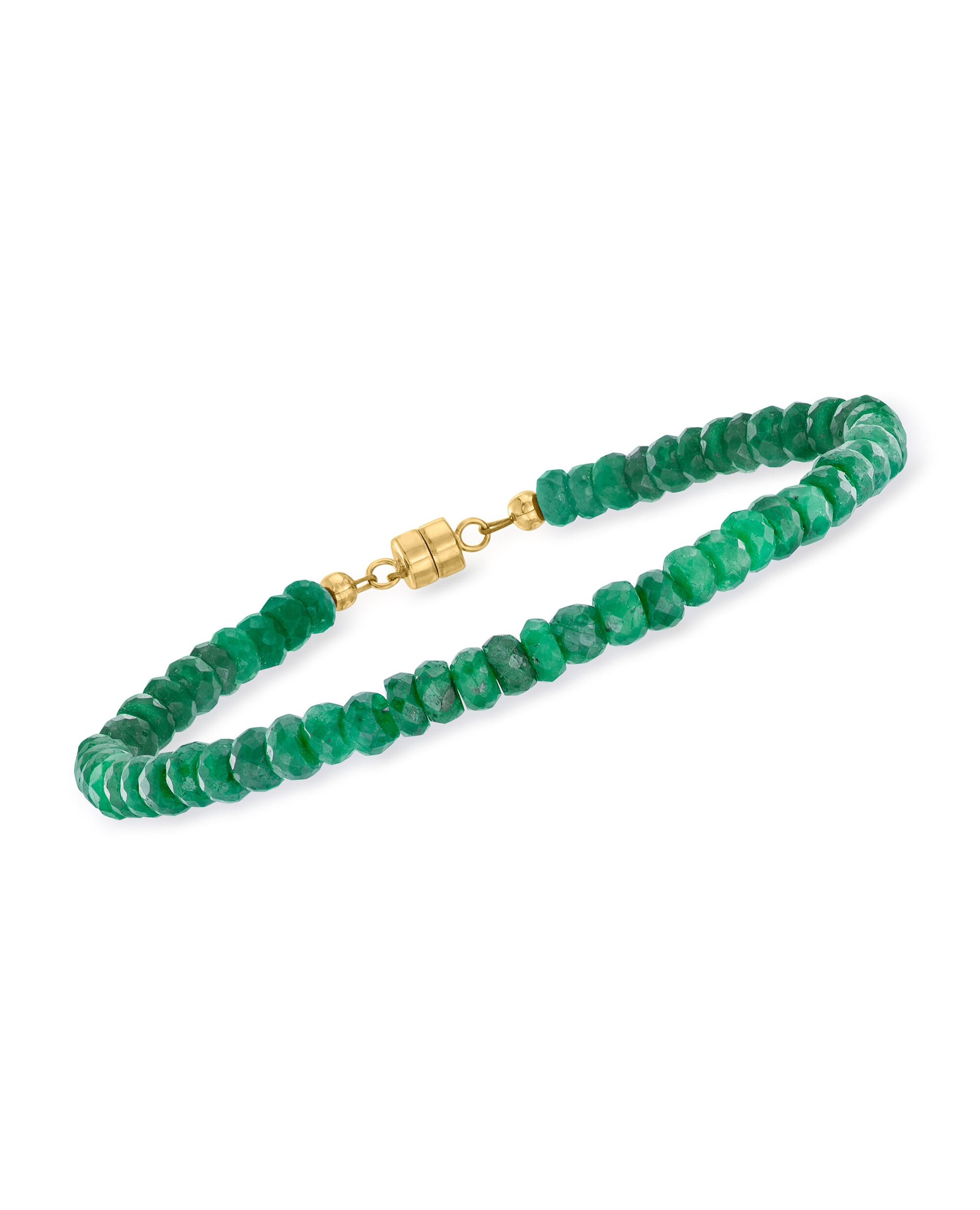 Ross-Simons Emerald Bead Bracelet With 14kt Yellow Gold Magnetic Clasp