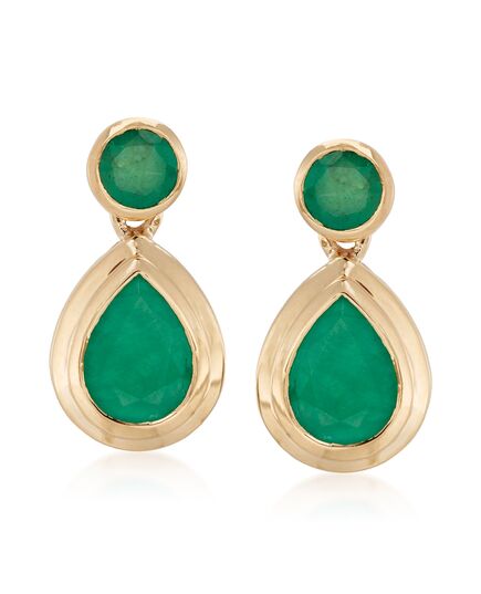 Ross-Simons Emerald Drop Earrings in 14kt Yellow Gold