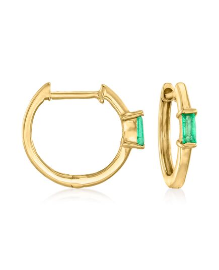 Ross-Simons Emerald Huggie Hoop Earrings in 14kt Yellow Gold