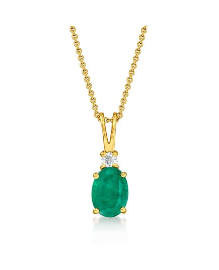 Established in 1952, Ross-Simons brings jewelry classics into the modern era. Go green in this gorgeous pendant necklace. It boasts a .80 carat oval emerald sparked by a diamond accent in polished 14kt yellow gold. Suspends from a cable chain. Springring clasp, emerald pendant necklace. Necklace drop length - 1/2 inch long. Necklace drop width - 3/16 inch wide. Each Ross-Simons item arrives in a fine jewelry presentation box. Shop Ross-Simons jewelry risk-free as all items include a 30-day, 100% money-back guarantee.Stone InformationGem Type 1 - EmeraldStone Cut 1 - Good-CutStone Color 1 - GreenStone Clarity 1 - GreenStone Shape 1 - Oval-ShapeStone Creation Method 1 - NaturalStone Treatment Method 1 - OiledStone Weight 1 - 0.80 CaratsNumber Of Stones 1 - 1Gem Type 2 - DiamondStone Cut 2 - Good-CutStone Color 2 - G-HStone Clarity 2 - I1Stone Shape 2 - Round-ShapeStone Creation Method 2 - NaturalStone Treatment Method 2 - Not-TreatedStone Weight 2 - 0.05 CaratsNumber Of Stones 2 - 1