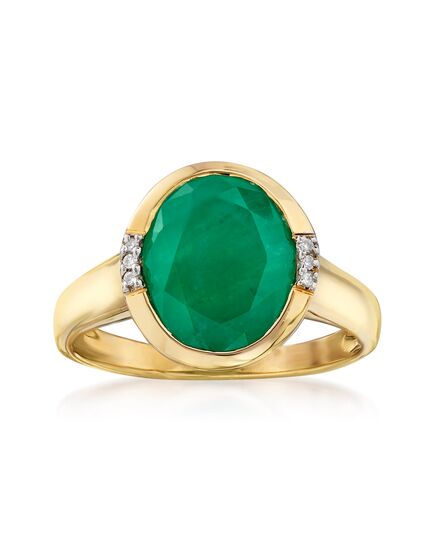 Ross-Simons Emerald Ring With Diamond Accents in 14kt Yellow Gold
