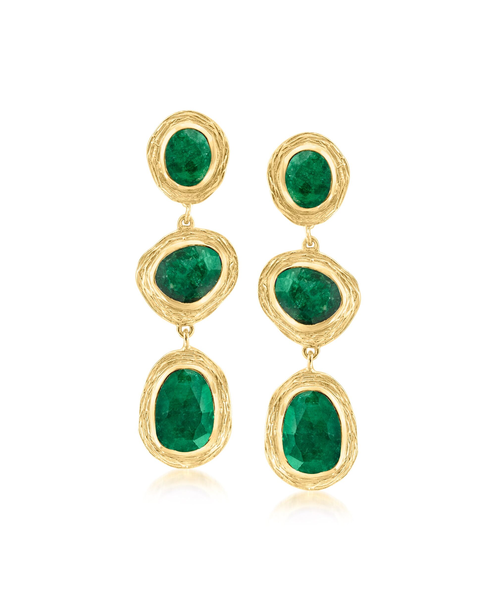 Ross-Simons Emerald Station Drop Earrings in 18kt Gold Over Sterling
