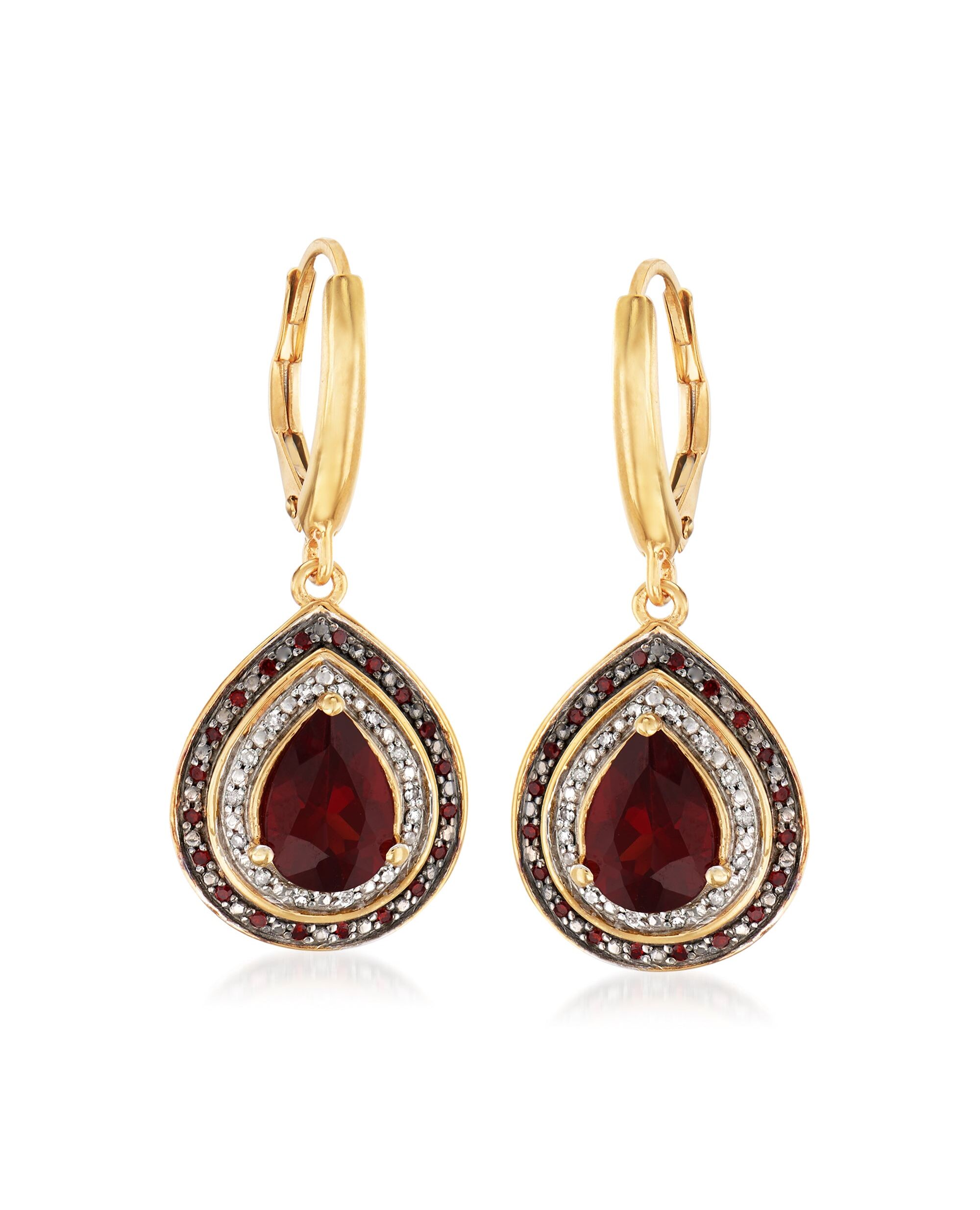 Ross-Simons Garnet and . Red and White Diamond Drop Earrings in 18kt Gold Over Sterling