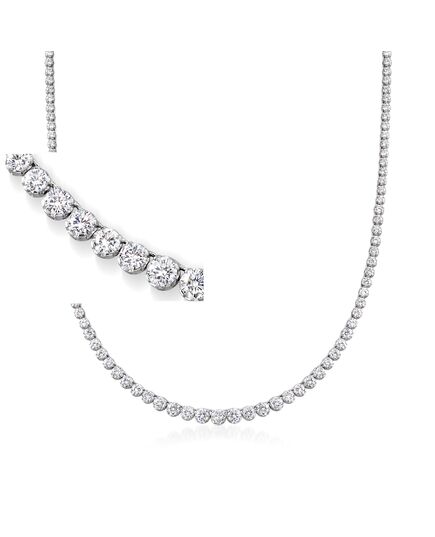 A top-rated jeweler since 1952, Ross-Simons travels the world to find high-quality styles at the best prices. Light up the night with this glittering trail. Set to shine in sterling silver, this tennis necklace showcases a grand 20.00 ct. t.w. of graduated, round brilliant-cut CZs. Box clasp, CZ tennis necklace. CZ weights are diamond equivalents. Each Ross-Simons item arrives in a fine jewelry presentation box. Shop Ross-Simons jewelry risk-free as all items include a 30-day, 100% money-back guarantee.Stone InformationGem Type 1 - Cubic-ZirconiaStone Cut 1 - Good-CutStone Color 1 - ClearStone Clarity 1 - ClearStone Shape 1 - Round-ShapeStone Creation Method 1 - SyntheticStone Treatment Method 1 - Not-TreatedStone Weight 1 - 20.00-22.00 CaratsNumber Of Stones 1 - 91-116