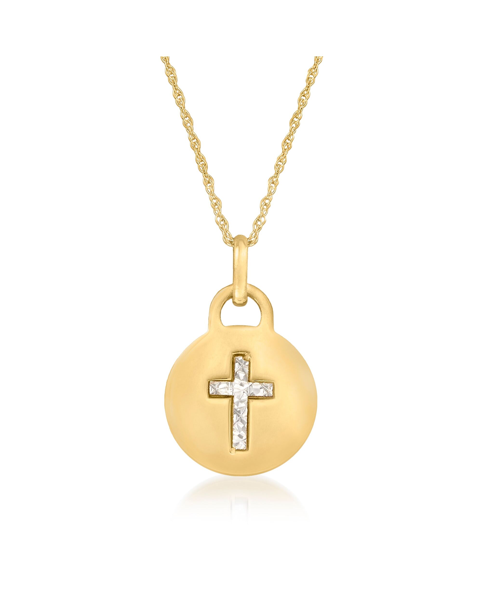 Ross-Simons Italian 14kt 2-Tone Gold Diamond-Cut Cross Pendant Necklace