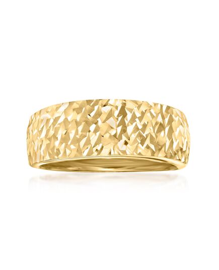 Established in 1952, Ross-Simons brings jewelry classics into the modern era. Italian goldsmiths take the contemporary road on this design. A collection of diamond cuts covers the surface of the ring in a glittery, geometric texture. 1/4" wide. 14kt yellow gold ring. Each Ross-Simons item arrives in a fine jewelry presentation box. Shop Ross-Simons jewelry risk-free as all items include a 30-day, 100% money-back guarantee.