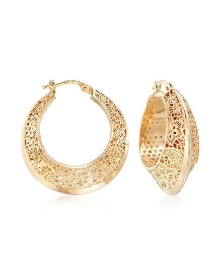 Ross-Simons Italian 14kt Yellow Gold Floral Filigree Hoop Earring