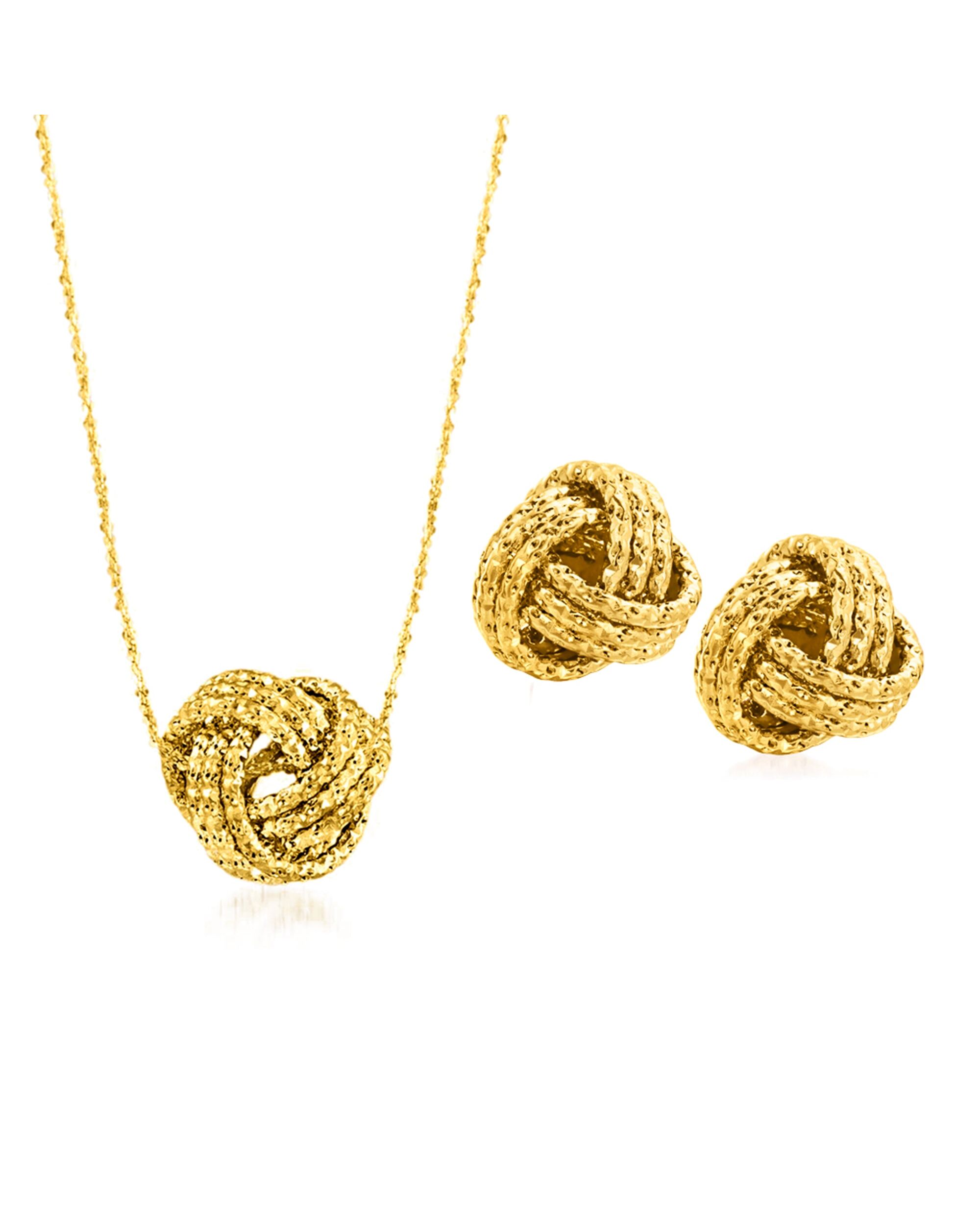Ross-Simons Italian 14kt Yellow Gold Love Knot Jewelry Set: Necklace and Stud Earrings