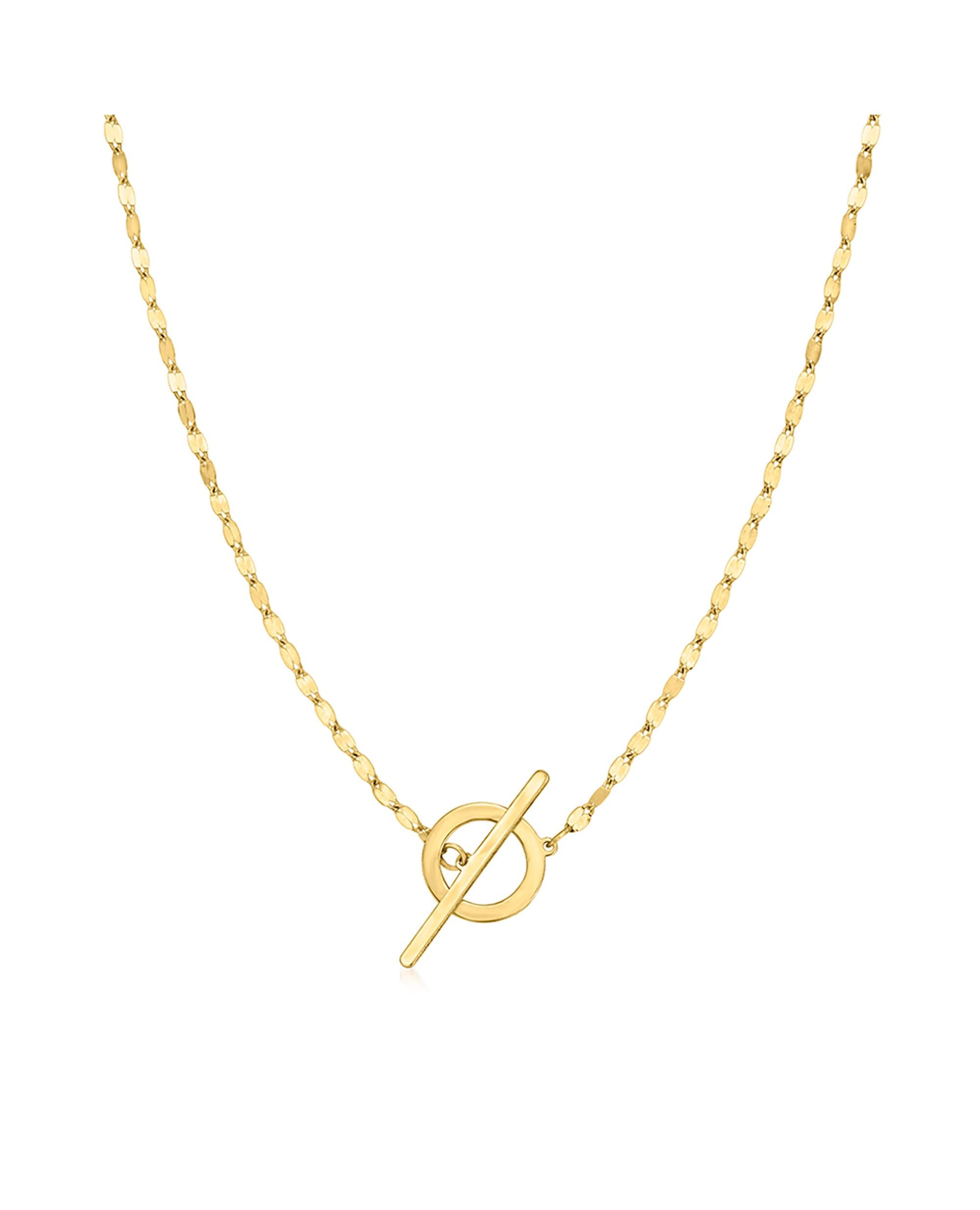 Established in 1952, Ross-Simons presents contemporary styles with a timeless appeal. RS Pure. Modern designs that complete your outfit and complement your personality. Crafted in Italy, the simple lumachina chain is enhanced by the functional toggle clasp statement. Wear it with all your dainty jewelry for a contemporary look. 14kt yellow gold lumachina necklace. Each Ross-Simons item arrives in a fine jewelry presentation box. Shop Ross-Simons jewelry risk-free as all items include a 30-day, 100% money-back guarantee.