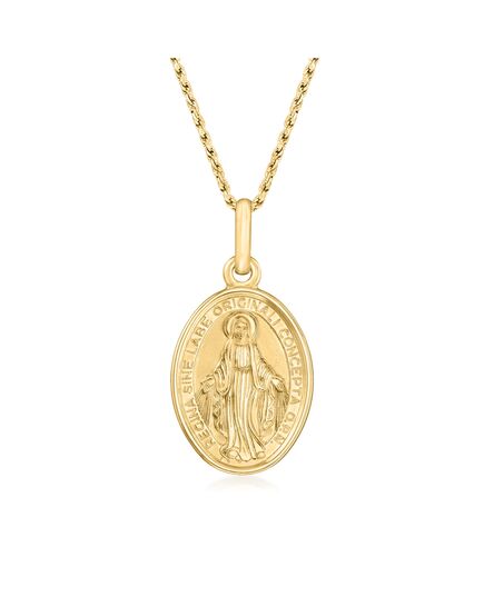 Developing fresh ways to wear timeless looks, Ross-Simons masters the classics. A spiritual expression of faith and dedication, the Miraculous Medal pendant shines in satin and polished 14kt yellow gold. Made in Italy. Single bale fits chain up to 3mm, sold separately. 14kt yellow gold Miraculous Medal pendant. Each Ross-Simons item arrives in a fine jewelry presentation box. Shop Ross-Simons jewelry risk-free as all items include a 30-day, 100% money-back guarantee.