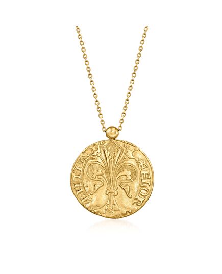 Ross-Simons Italian 14kt Yellow Gold St. John and Fleur-De-Lis Reversible Pendant Necklace