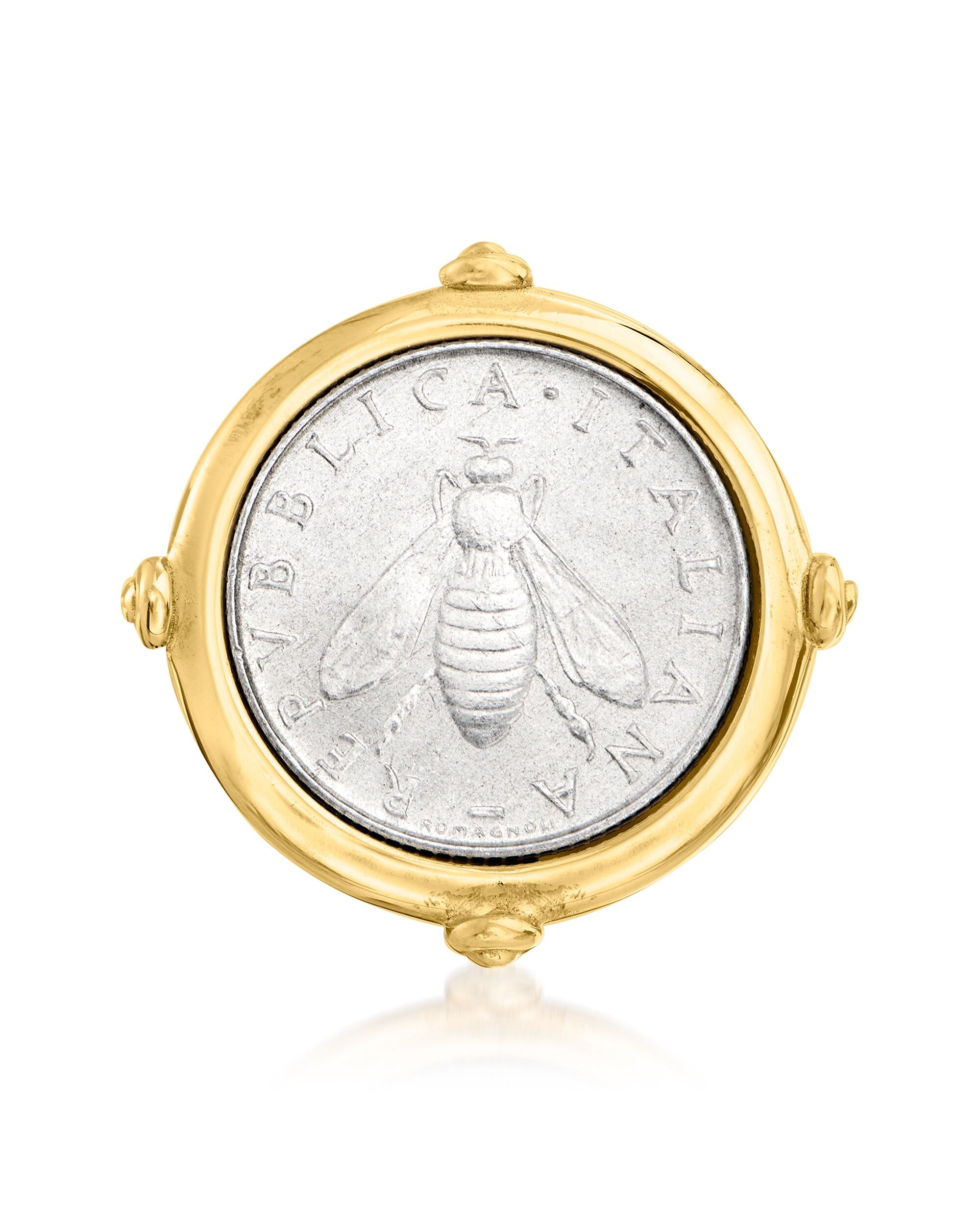 Ross-Simons Italian 18kt Gold Over Sterling 2-Lira Bee Coin Ring