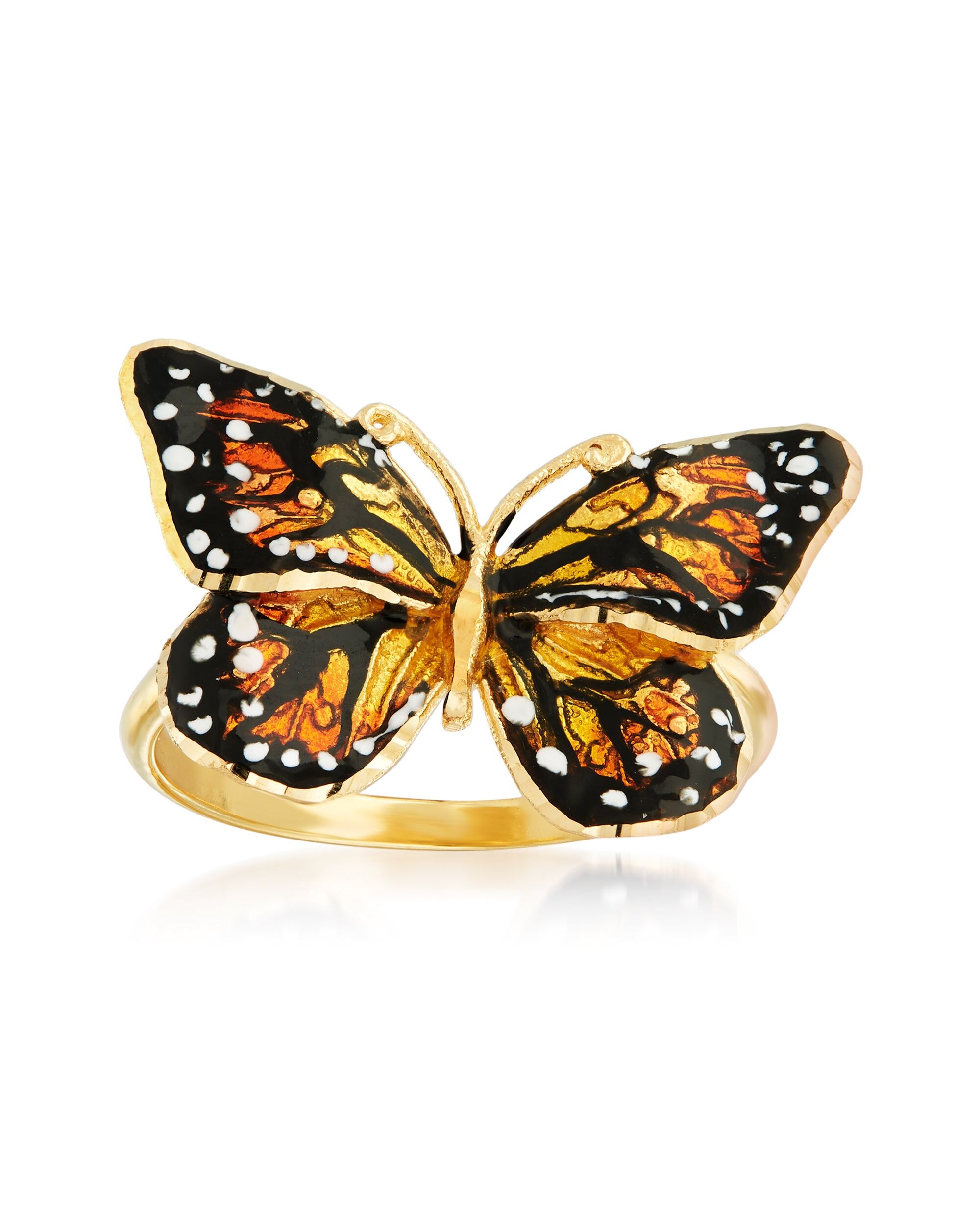 Ross-Simons Italian 18kt Yellow Gold Butterfly Ring With Enamel